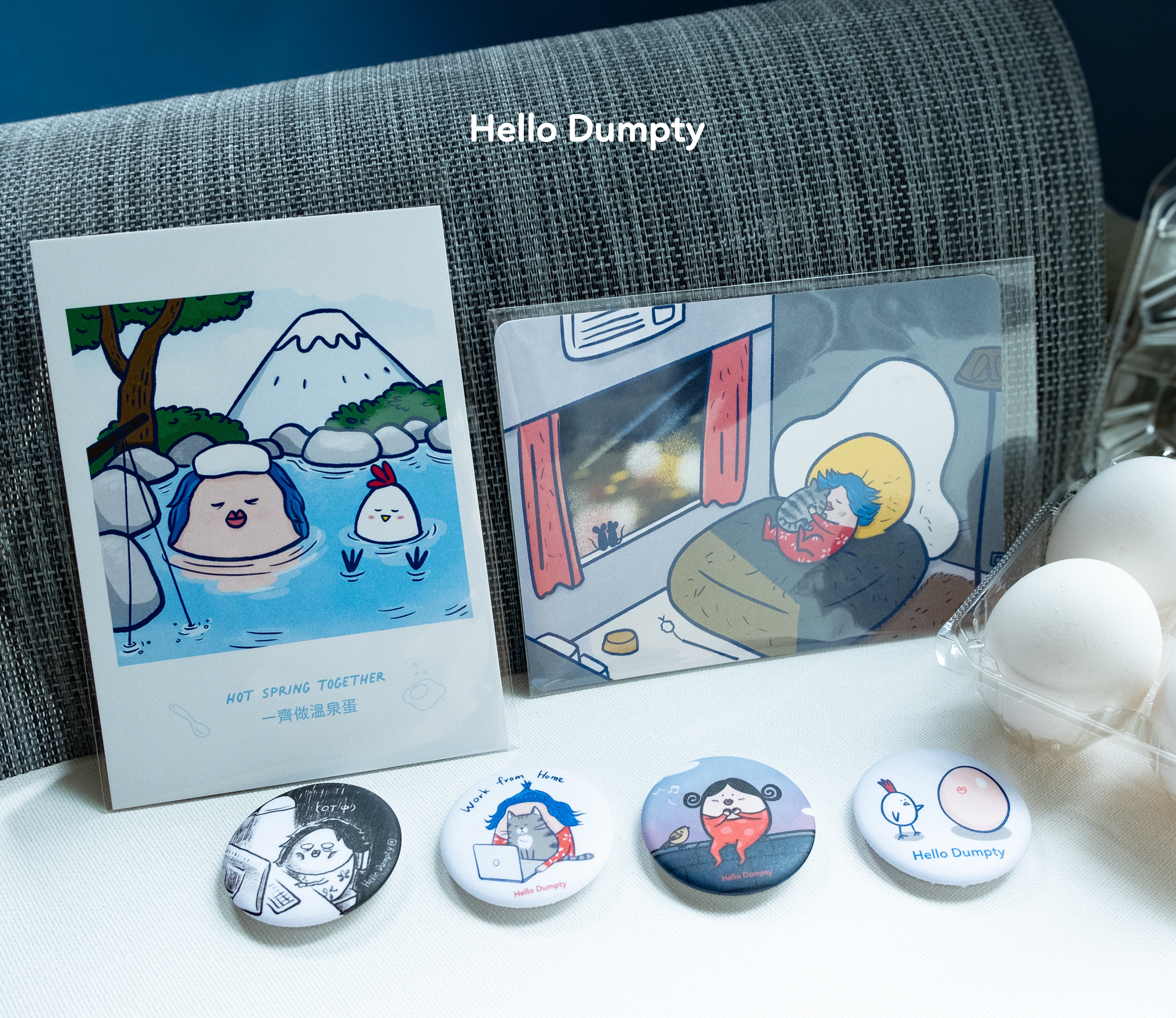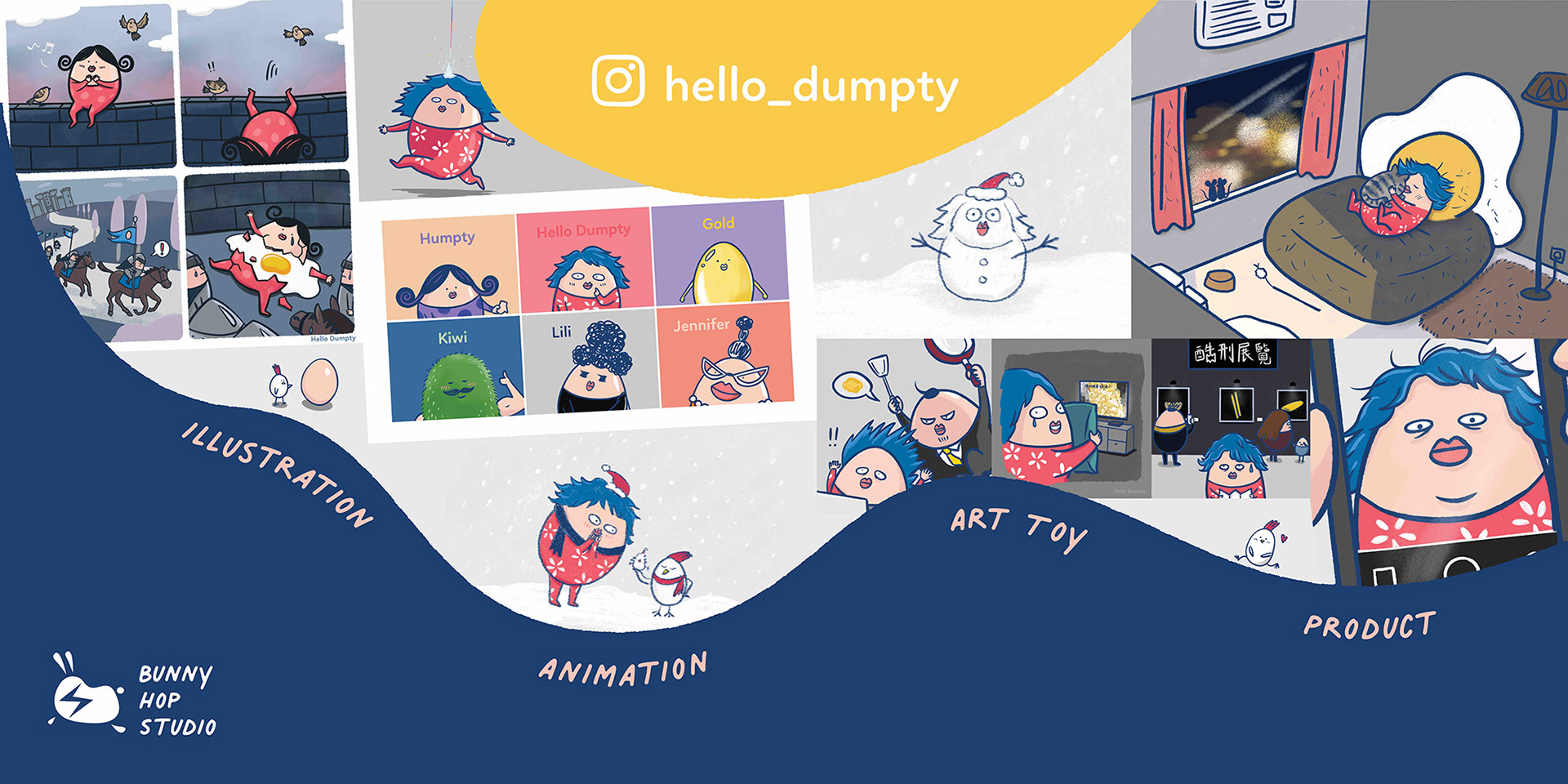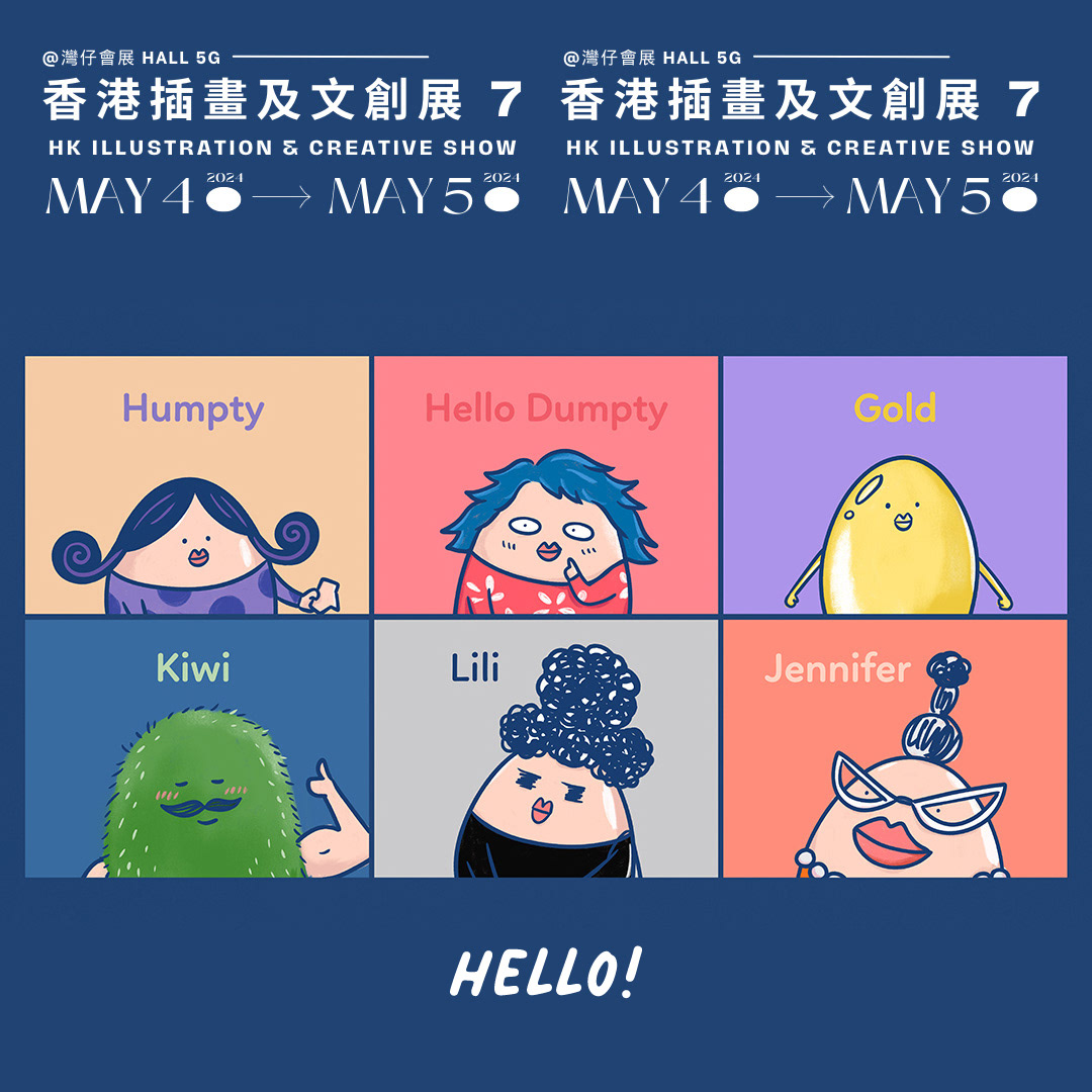 Hello Dumpty is our original illustrated IP character.